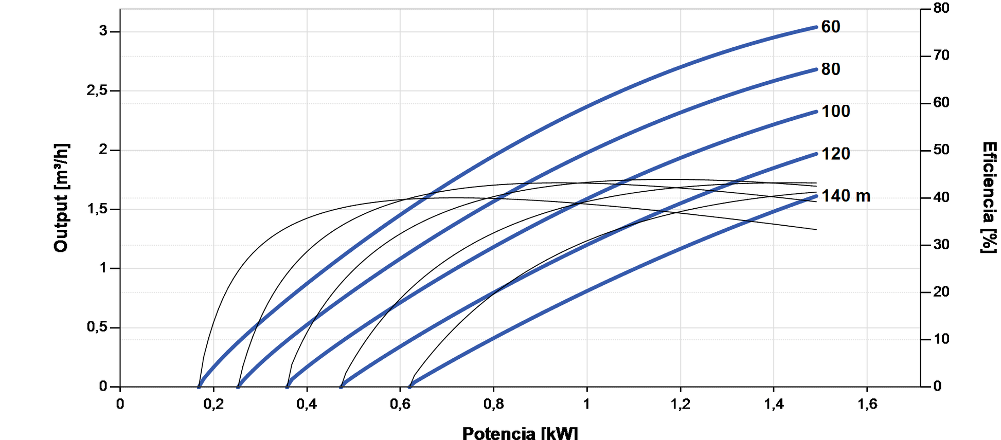 | Caudal / Altura máx. | 3,0 m³/h / 140 m |