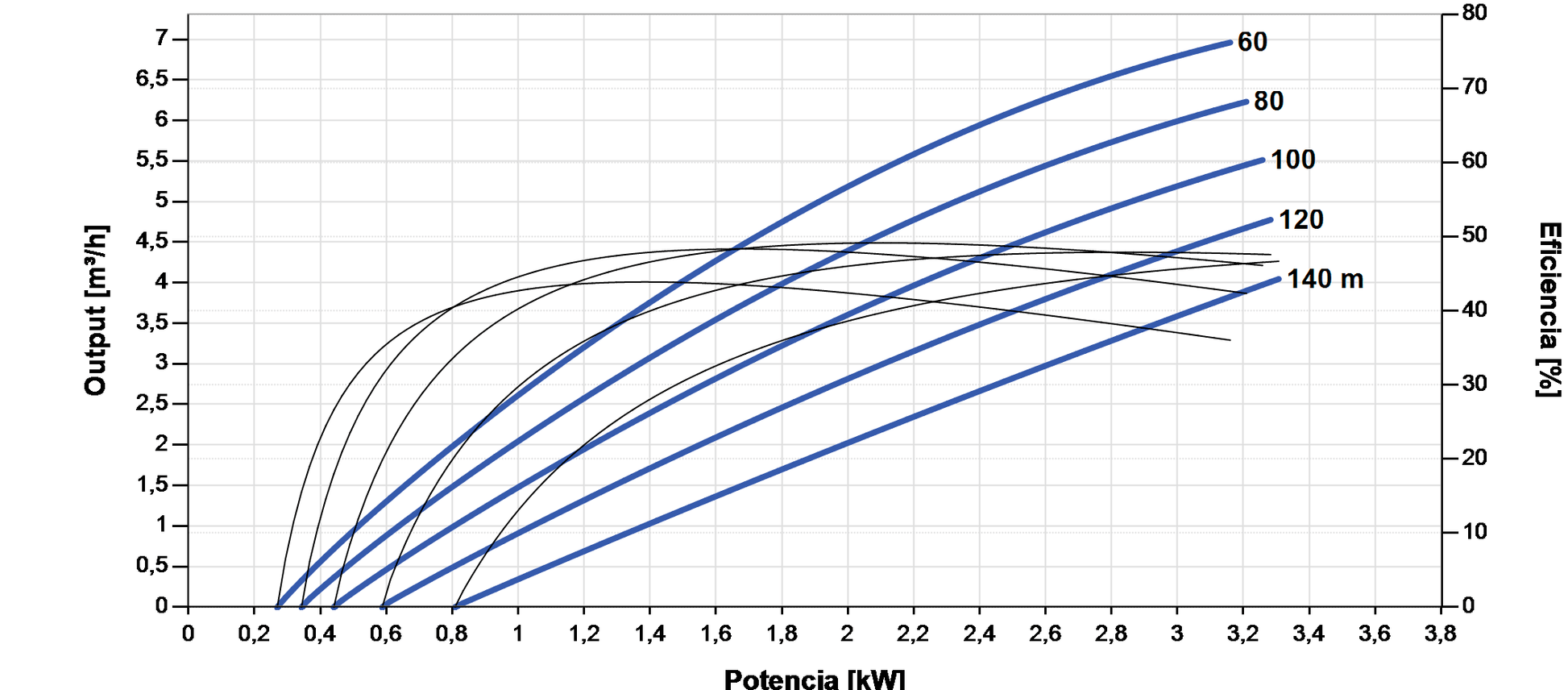 | Caudal / Altura máx. | 7,0 m³/h / 140 m |