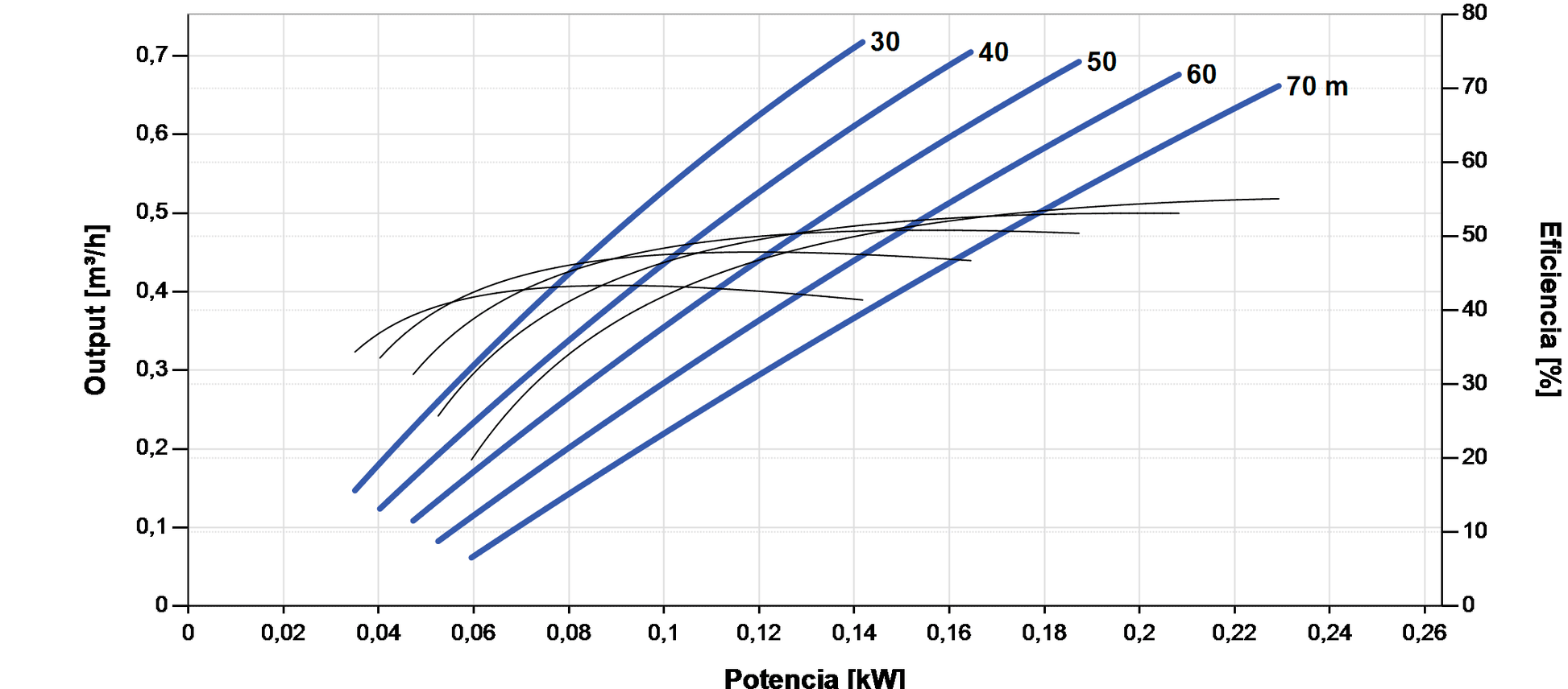 • Altura de bombagem de referência até 90 m com débito de 0,73 m³/h.