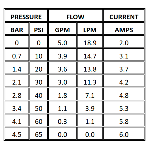| Caudal | 18,9 l/min (0 PSI) · 11,3 l/min (30 PSI) · 3,9 l/min (50 PSI) |