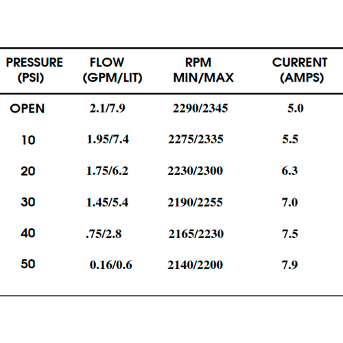 A Bomba de Pressão Shurflo 12V 7,9 l/min 50 PSI 8000-544-250 é uma versão de alto débito da série 8000, concebida sem pressóstato para sistemas de pulverização controlados por válvulas e bicos. Integra bypass interno 45 PSI e uma válvula de retenção de duplo sentido que evita o retorno e permite até 6 ft de coluna em fluxo direto, assegurando um padrão de pulverização uniforme e uma operação fiável em uso contínuo.