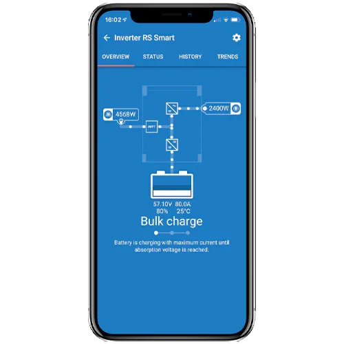 O Inversor com MPPT Victron RS Smart Solar 48V 6000VA 48/6000 é uma solução integral e eficiente para fornecer energia de qualidade profissional a projetos de 48 V que exijam máximo desempenho e controlo avançado.